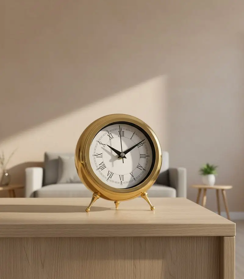 Zamanın şıklığını evinize taşıyın! Sessiz, metal gövdeli, gerçek camlı altın masa saati ile tarzınızı yansıtın.