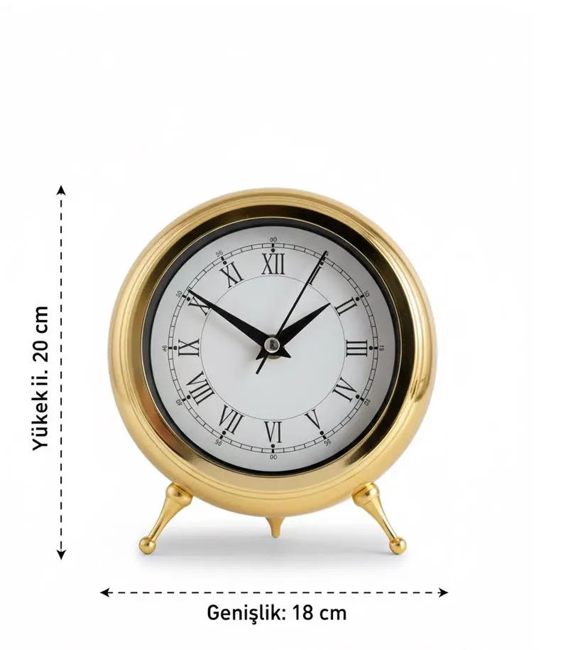Zarafetin ve fonksiyonelliğin birleştiği Altın Dekoratif Masa Saati, modern yaşam alanlarına uyum sağlayacak şekilde tasarlanmıştır. Şık altın rengi kaplamasıyla dikkat çeken bu masa saati, evinizin, ofisinizin ya da çalışma alanınızın her köşesine estetik bir dokunuş katar. Sessiz akar saniyeli mekanizması ile rahatsız edici tıkırtı sesleri olmadan zamanı takip edebilmenizi sağlar.