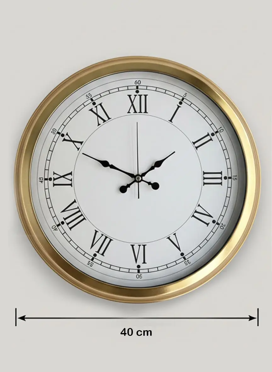 Dekoratif Duvar Saati Gold Metal | 40 cm | Sessiz Akar Saniyeli | Butik Saat, modern ve dayanıklı bir dekoratif duvar saati. 40 cm çapında, 6,5 cm derinliğinde, gerçek camlı tasarım.