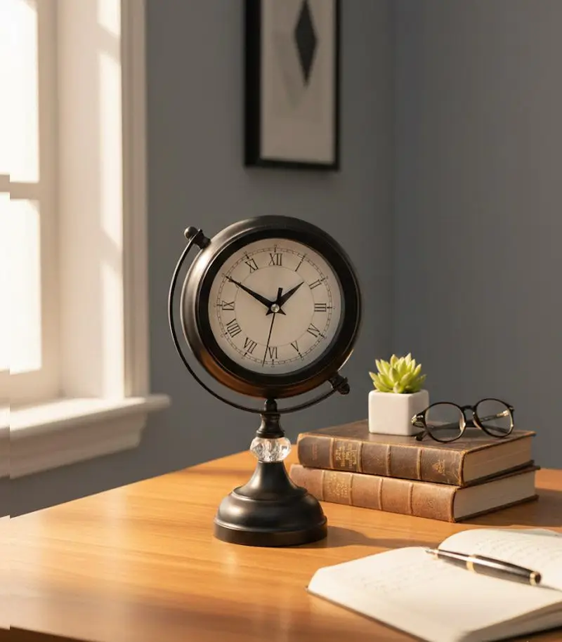 Ölçü:31 x 18 cm, dengeli ve dikkat çekici masa saati ölçüsü.