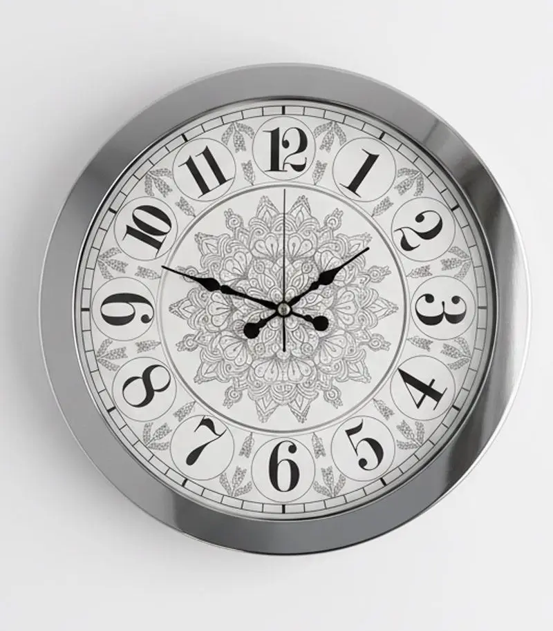 Zarif krom tasarımıyla duvarlarınıza modern bir dokunuş katın! Sessiz mekanizmalı dekoratif saatle şıklığı her an yaşayın.