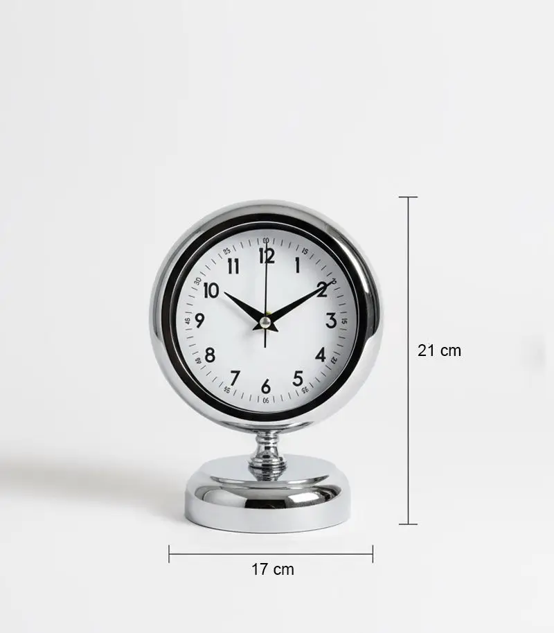 Metal Modern Krom Masa Saati Modeli | 21×17 cm | Butik Saat