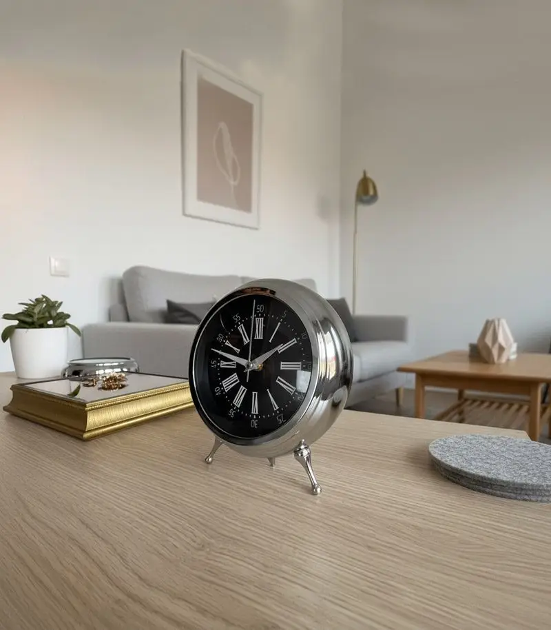 Şık metal tasarım ve sessiz mekanizmasıyla masa saatinizi yenileyin, dekorasyonunuza zarafet ve modernlik katın.