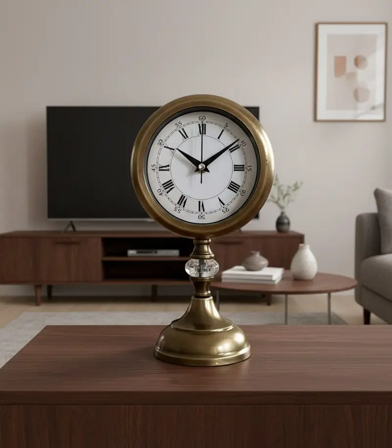 Gerçek cam, sessiz mekanizma ve eskitme metal tasarımıyla zarafeti yaşam alanınıza taşıyan bu dekoratif masa saatini keşfedin.