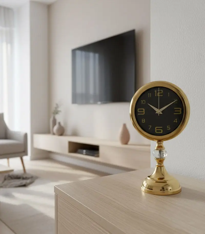 Metal Kristal Gold Masa Saati Modeli, sadece bir zaman göstergesi değil; mekanlarınıza ışıltı ve karakter kazandıran bir sanat objesidir.