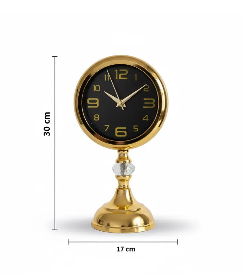 Goldun zarafetini yaşam alanınıza taşıyın! Metal Kristal Gold Masa Saati ile zamanın şıklığını her an hissedin
