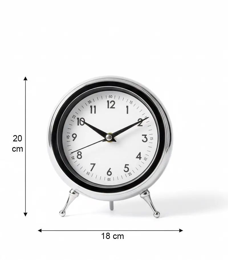 Metal Krom Masa Saati | 20×18 cm | Butik Saat