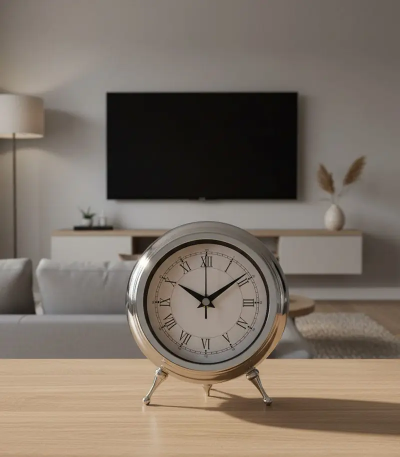Metal Modern Krom Masa Saati Modeli | 21×17 cm | Butik Saat