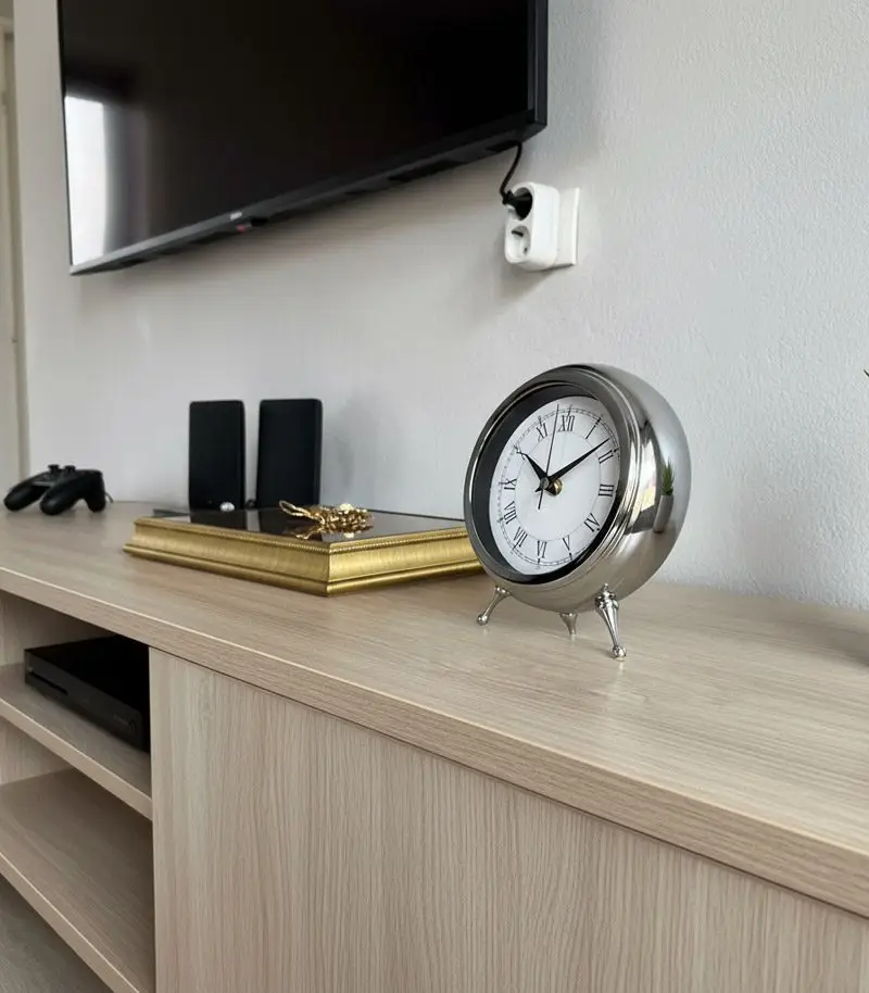 Şık ve dayanıklı metal masa saatiyle zamanın tadını çıkarın, dekorasyonunuza zarafet katın ve her alanı tamamlayın.
