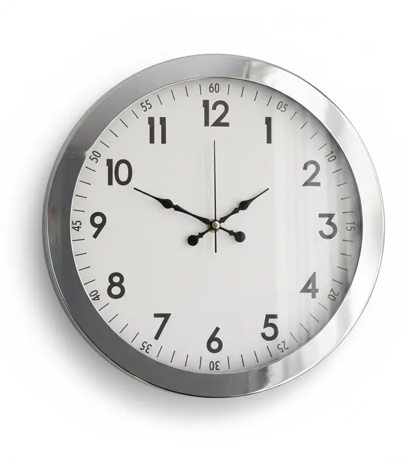 Parlak krom tasarımıyla ofisinize zarafet katın! Sessiz mekanizmasıyla dikkat çeken bu metal duvar saati, kaliteyi yansıtır.