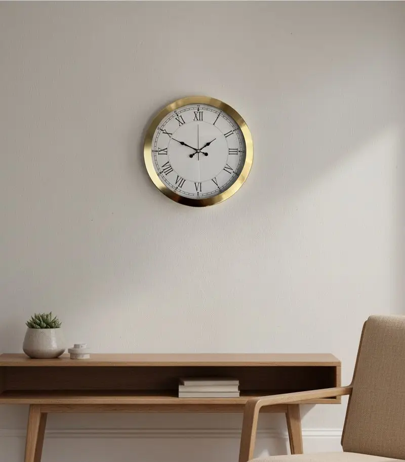 Zamana retro bir zarafet katın! Gold detaylarıyla parlayan bu duvar saatiyle yaşam alanlarınıza stil kazandırın.