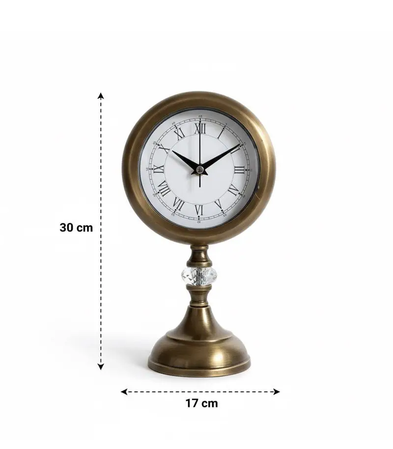 Retro tarzın zarafetini metal gövde ve kristal camın parlaklığıyla buluşturan bu masa saatiyle şıklığı yeniden keşfedin.