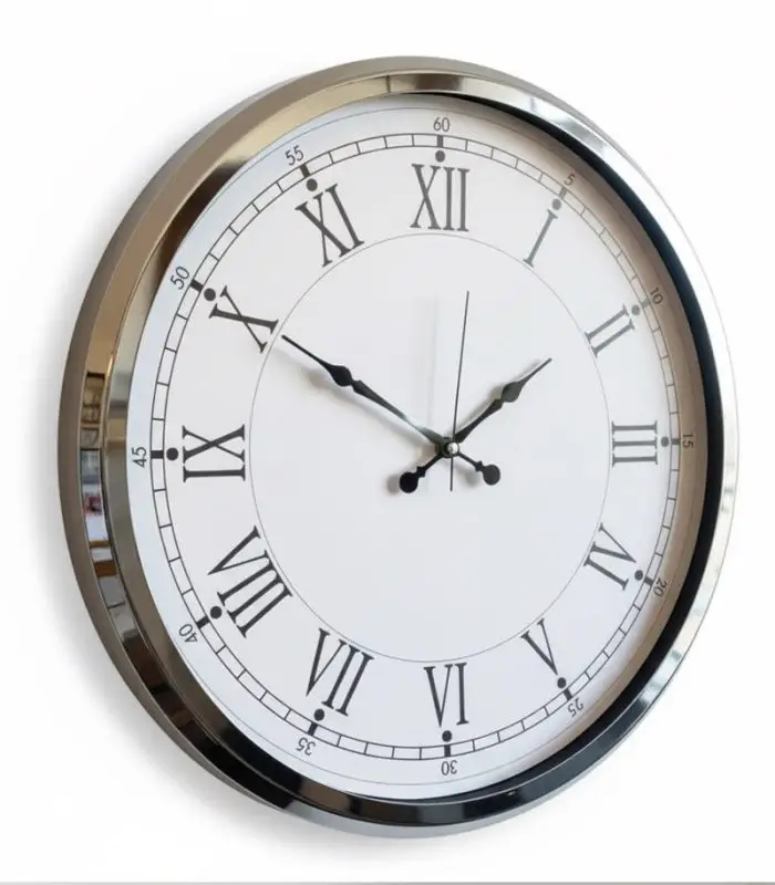 Zarafetin ve zamanın mükemmel uyumunu bir arada sunan Metal Romen Krom Duvar Saati, klasik Romen rakamlarıyla modern krom parlaklığını buluşturur. Ofis, salon veya otel gibi alanlarda sofistike bir atmosfer oluşturmak isteyenler için tasarlanmıştır. Büyük çapı ve sade tasarımıyla dikkat çeken bu duvar saati, her mekâna göz alıcı bir estetik katar.