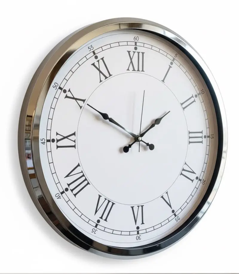 Klasik Romen rakamlarıyla modern krom şıklığını buluşturun! Metal Romen Krom Duvar Saati ile duvarınıza zarafet katın!