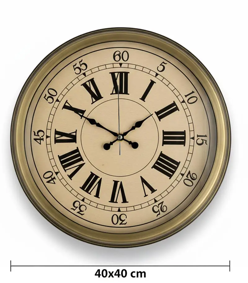 Retro Romen Eskitme Duvar Saati | 40 cm – Metal gövde, gerçek cam ve sessiz akar saniye mekanizması ile dekoratif ve uzun ömürlü retro tarz duvar saati.