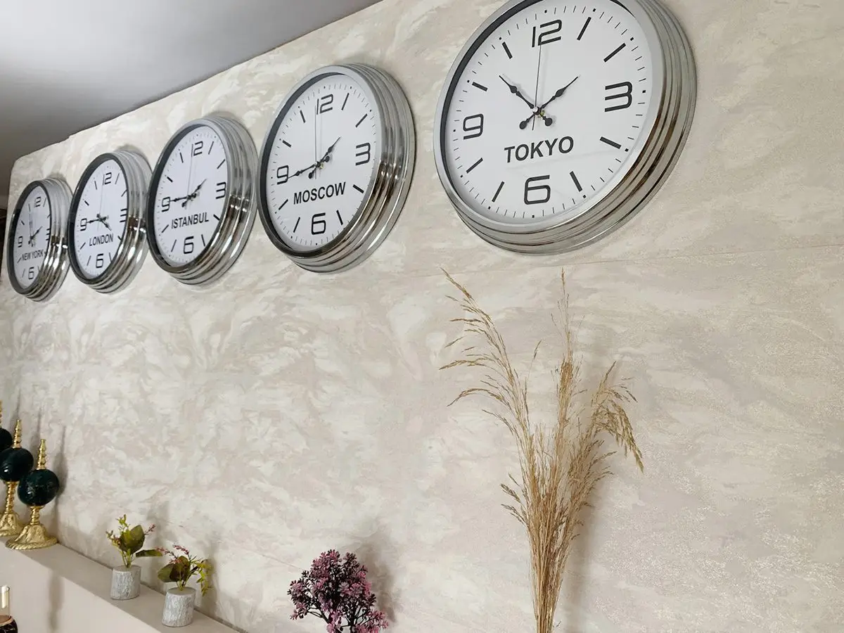 | Ürün Adı | Ülke Saatleri Duvar Saati 40 cm Krom Metal 5’li Seti |